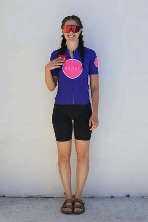 High performance cycling jersey featuring a mandarin collar, hidden zipper, rear pockets, and surge-seam stitching for a clean finish. Its fitted streamline silhouette and lightweight, moisture-wicking Italian fabric keeps you cool and aerodynamic. Designed with an elastic waistband with silicone gripper and reflective accents.