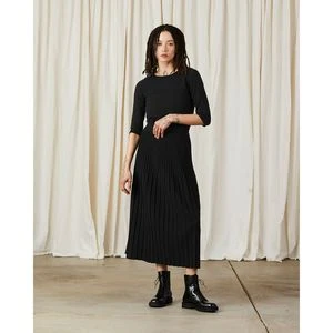 Pleated knit midi skirt with elastic waist in fall weight soft durable yarn. Pair with Ali Golden’s Black Ballet top or oversized Mohair Pullover.