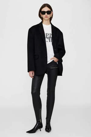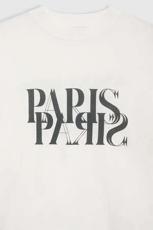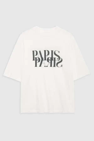 The Avi Tee Paris is an oversized, boxy T-shirt constructed from lightweight 100% organic cotton jersey in ivory. It features a screen-printed mirrored graphic at the chest in contrast black with the ANINE BING Paris store address across the back.
