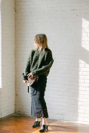 This skirt from Apiece Apart features a straight silhouette, elastic at waist, zip closure, and removable slip lining.