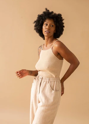 This lightweight knit in our high gauge alpaca is the perfect base for your Fall wardrobe. Tubular straps, a gentle scooped neckline, a low straight backline, and a snap gusset make it a comfy, stylish staple.