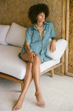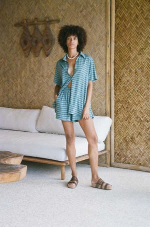 CHA short – relaxed fit featuring a high elastic waist, side pockets, drop crotch. Styled with our CHA Button up.