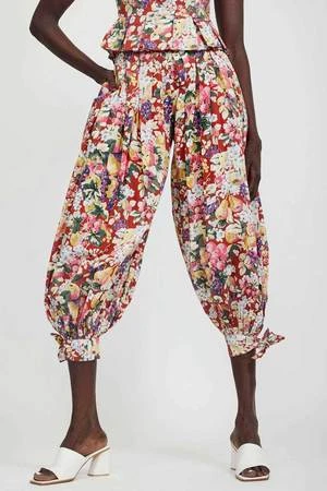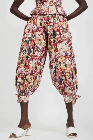 The Hauls Pant in Rubens by Batsheva is a playful pant featuring ties at the ankle and pleated detailing, crafted in a cotton archival Laura Ashley Print.