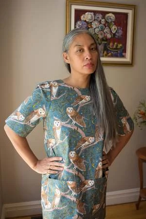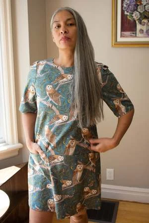 Birds of North America’s Cottontop Dress is a bit more relaxed than their usual silhouettes, but still elegantly tailored to flatter the body. Cut out of printed cotton, this dress has a crew neck, half sleeves and a straight cut through the body and skirt. The hem hits above the knee, making it professional for work but still sweet enough for play. The print features gorgeous illustrations of owls. It’s so beautiful, it takes our breath away!