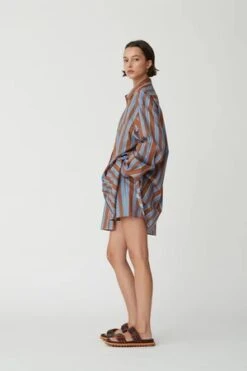 a relaxed fitting short, designed with a stripe, side pockets and an elasticated waistband. pair it perfectly with a button down or contrast with a print.