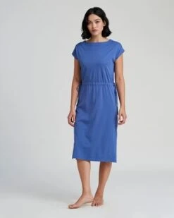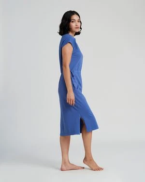 The love in the Barbara dress is its elegance that is met with ease. It is an easy slip on jersey dress that you can wash and wear for every day and equally chic when dressed up. It has a jersey tie waist that can cinch for a more defined waist or leave un-cinched and let it hang straight. Add a jacket or sweater over when things get cool.