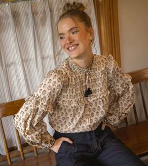 The Emberly Blouse is the perfect top to pair with your favorite pair of jeans or skirt. Made of 100% GOTS certified organic cotton mulmul, its ruffle and pintuck details add a touch of charm to any outfit.