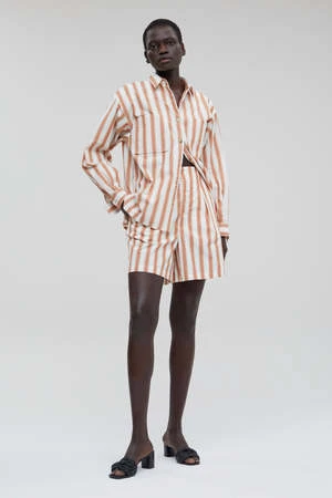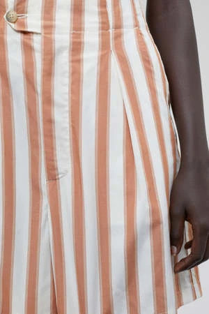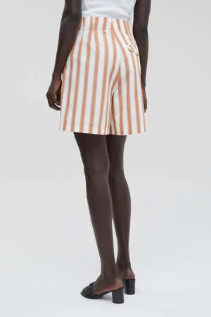 High waist shorts made of a yarn-dyed quality with Closed exclusive stripes pattern woven from pure organic cotton. Laterally offset button closure, pleats, side pockets and buttoned back pocket.