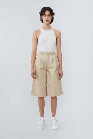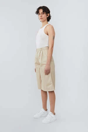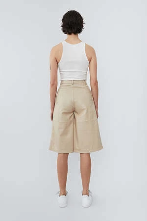 Wide leg leather shorts from Deadwood. A skirt-like culotte silhouette with a below-the-knee length makes these shorts great for an elevated spring transition look. The outer shell is made from recycled leather while the lining is made from 100% recycled PET bottles!