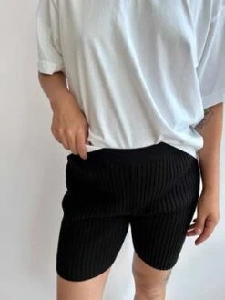 Compact rib knit shorts with elasticated waistband in soft cotton.