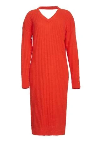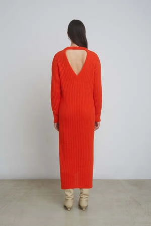 Vera sweater-dress offers a dressy yet relaxed approach to a little holiday-feel styling with its longer length and feminine, back keyhole detail in this must-have, tomato color. The dress is knit in a lofty, wide rib-stitch in the softest air-spun alpaca yarn for cozy yet elegant feel.