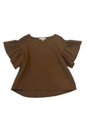 Eliza Faulkner’s Raffi Top is colourful and comfortable. Made completely out of linen, this breathable summer top is cut loose for even the hottest days. It has a scoop neck, dropped ruffle sleeves and long hem. The neutral colour is perfect for pairing with solid trousers, jeans or shorts.
