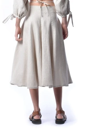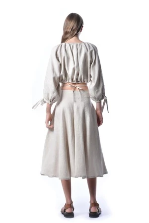 Inspired by Eliza’s mum’s love of floaty a-line skirts, we bring you the Berkley. The raw Berkley skirt is a midi length skirt made with panels of rich Vivaldi linen. What we love most about this skirt is that it doesn’t have a waistband, making it so easy and versatile to wear even on the hottest of summer days. It has an invisible zip at the back and side pockets too.