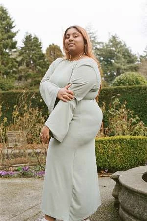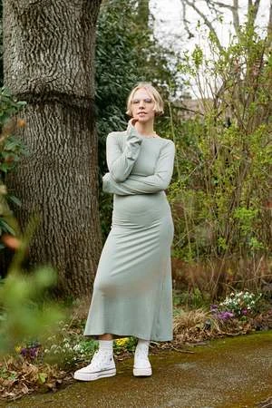 The Virtue dress is sure to be the staple of the season. This effortless piece has a low back, a lightly flared hem, and wide sleeves. This sage colour is a limited edition, exclusive to Luna.