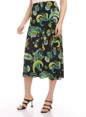 Abstract paisley patterns elevate this flowy skirt featuring a figure-flattering silhouette and soft movement.