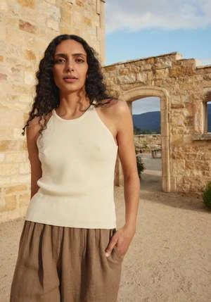 The perfect Summer companion, the Mara Tank, knit from the softest organic cotton. Styled with a high neckline and deep armholes for a flattering look to wear loose or tuck into your favorite high rise bottom.