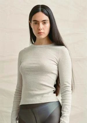 A fitted classic long-sleeve tee from Amsterdam-based Flore Flore with a banded neck and cuffs. Perfect for a summer night or winter layering. Made in a medium weight organic cotton baby rib.