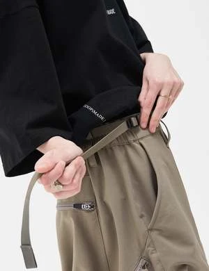 GOOPiMADE’s MWS-01 “Hydrodynamics” Utility Zip-Shorts feature a 3-in-1 design of water, lightness and transformation with a dynamic, geometric cutting storage space that offers two front pockets and two-way side zipper closure for secure small item storage.