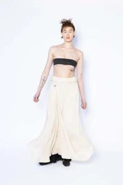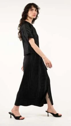 A cross-wrap design creates a notch cut in the front and soft ruching along the sides of this knit skirt.
