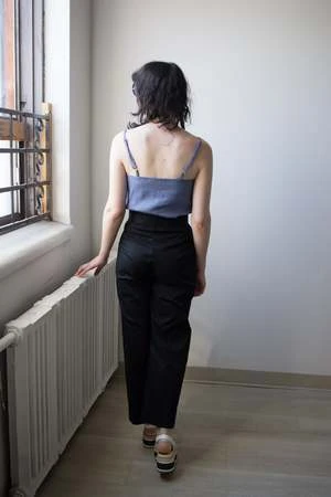 Jennifer Glasgow’s Lozen Pants are fashionable and comfortable. Made out of a blend of cotton and spandex, the Lozen Pants are loose and stretchy. These vintage-inspired pants have a high waist, front pleats and matching D-ring belt. We love the practical details of the elastic waistband and side pockets that make them even more wearable. Style them for work or play!