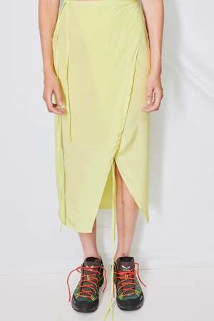 Lime Supermoon Skirt from Jovana Markovic. Wrap skirt with tie closure at waist and knee. Asymmetrical hem.