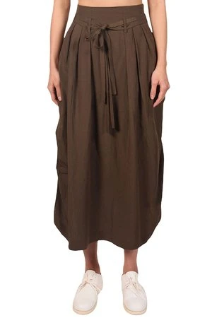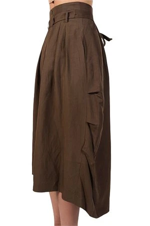 Side Pleated Skirt. Belt Loops at waist. Fabric belt. Side Pleats on side.