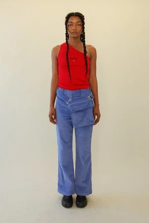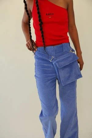 Introducing the Bag Pant – the pant that will make you question why all pants don’t come with a bag. A relaxed, cropped, and slightly flared pant that features a removable bag. The bag attaches and detaches from the pant and can be worn multiple ways: as a belt bag, a cross body bag, and removed from the pant to be utilized as a bag on its own.