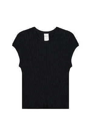 A versatile trans-seasonal sweater tee by Kowtow, made from 100% certified Fairtrade organic cotton knitted in a wide rib. The Rib Knit Tee has a standard fit and features a high crew neck, cap sleeve and shortened length. Wear on its own or as a layer.