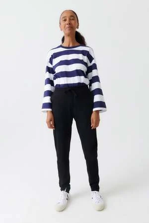 A relaxed track pant made from organic cotton sweatshirting with a brushed inner for superior comfort. The Weekend Pant features both side seam pockets and back patch pockets, and is finished with a ribbed elastic waistband and drawcord.