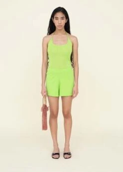 Pomelo color sport shorts from Maryam Nassir Zadeh in a lightweight stretch jersey. Pull-on style with elasticized waistband. Unlined.