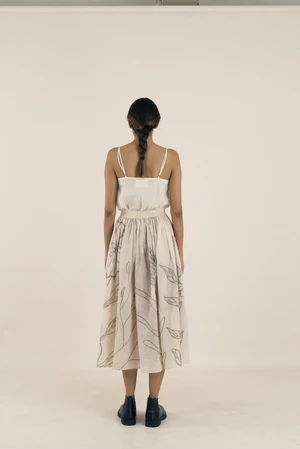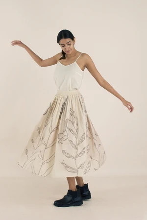 A calf-length gathered and elasticated skirt for you to swirl around in. It features side pockets.