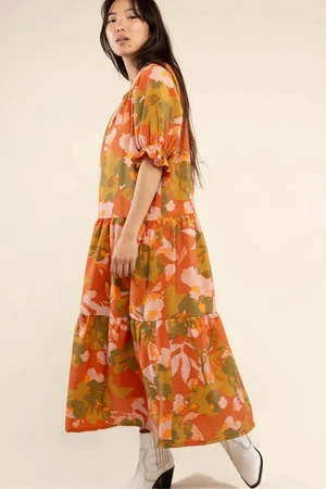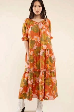 This flowy and oversized tiered mumu dress with puff sleeves is the perfect transitional dress.