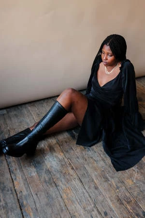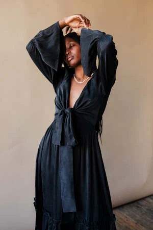 OHSEVENDAYS Bailey reversible dress in black. This dress is so versatile with a wrap style front or back, and an elasticated waistband. Features side pockets, and double side slits to show a bit of leg.