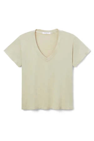The perfect, slightly-oversized v-neck tee. The essential staple piece you will want to live in, hitting just below mid-rise denim. With many perfectly curated hues to choose from, if you get a few, your closet will thank you. This Oatmilk is a versatile colour and one that will look both classic and chic with whatever you wear.