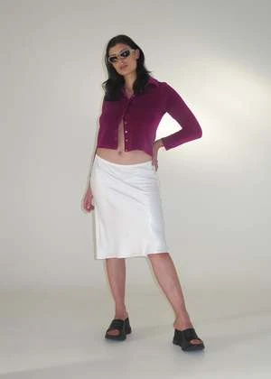 A versatile optical white skirt with a nuanced A-line shape ~ we have softly laundered this piece for a lived-in feel.