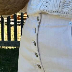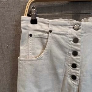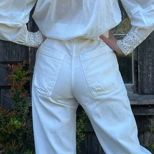 The Elkin Pant is one of our all-time favorites, cut this season in our soft Dirty Pomona Denim. This style can sit at the lower waist, on your hips, or tighten the back strap to wear higher at your natural waist. Angled darts give the leg a subtle cocoon shape that ends in a slight crop.