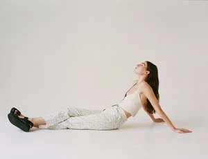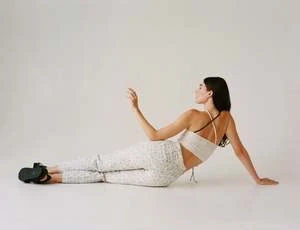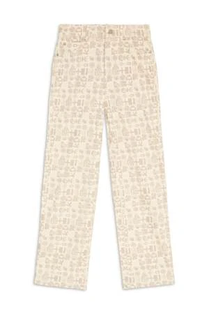 Our Milly straight pant in the “Man and His Symbols” print. The Milly pant also comes in planets print in bone color. Flame print pictured for fit reference.