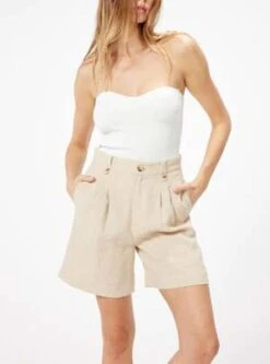 These Taupe Linen High Waist Shorts are a stylish and lightweight addition to any wardrobe. Crafted from natural linen fabric, they provide the perfect balance of breathability and structure for optimal comfort. These shorts sit high on the waist, flattering the silhouette and creating a timeless, elegant look.