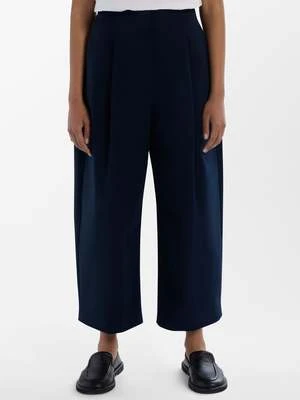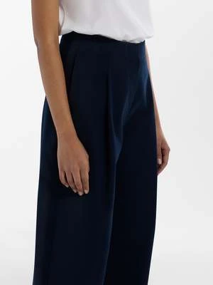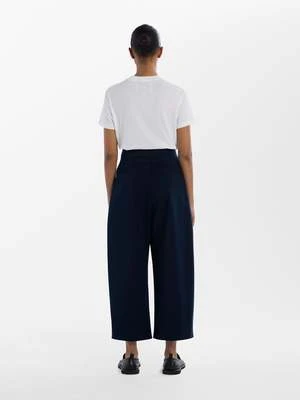 High-waisted volume pant made from our signature Italian peached cotton twill. Deep front pleat with concealed zip fly and hook and bar closure. Two side seam pockets and two rear welt pockets. Cropped leg.