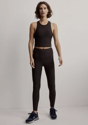 The Varley Let’s Move Rib High Leggings 25 in Chocolate Torte are high-rise leggings offering a ribbed texture. Compatible with any athleticwear or sweatshirt, these leggings are an ideal choice for yoga, pilates, and any daily activity.