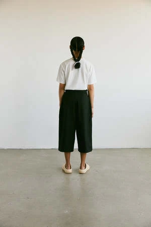With its structured cut and sturdy cotton ripstop, the Milo trousers combine luxury and comfort. The wide and cropped leg, the pleats on the front, as well as the adjustable straps at the waist make this item a unisex basic, sophisticated and easy to wear.