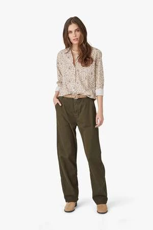 Tailor-Made, a Xirena favorite in vintage green twill. This straight leg pant has side seam pockets and a single left back pocket.