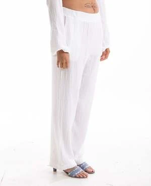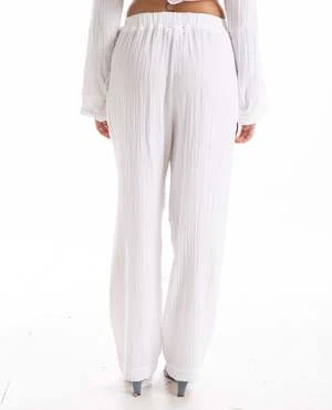 Demsey Pant in wihte by Xirena. Demsey is a wide leg pull-on pant with an elasticized waist and side seam pockets.