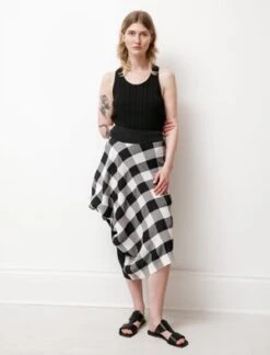 The perfect spring skirt, this number from Y’s is light weight and incredibly comfortable. A soft polyester blend across the back offers just the right amount of stretch, with a cotton front that affords its asymmetric cut some structure in a playful gingham check. Finished with an elasticated waist… what more could you ask for?